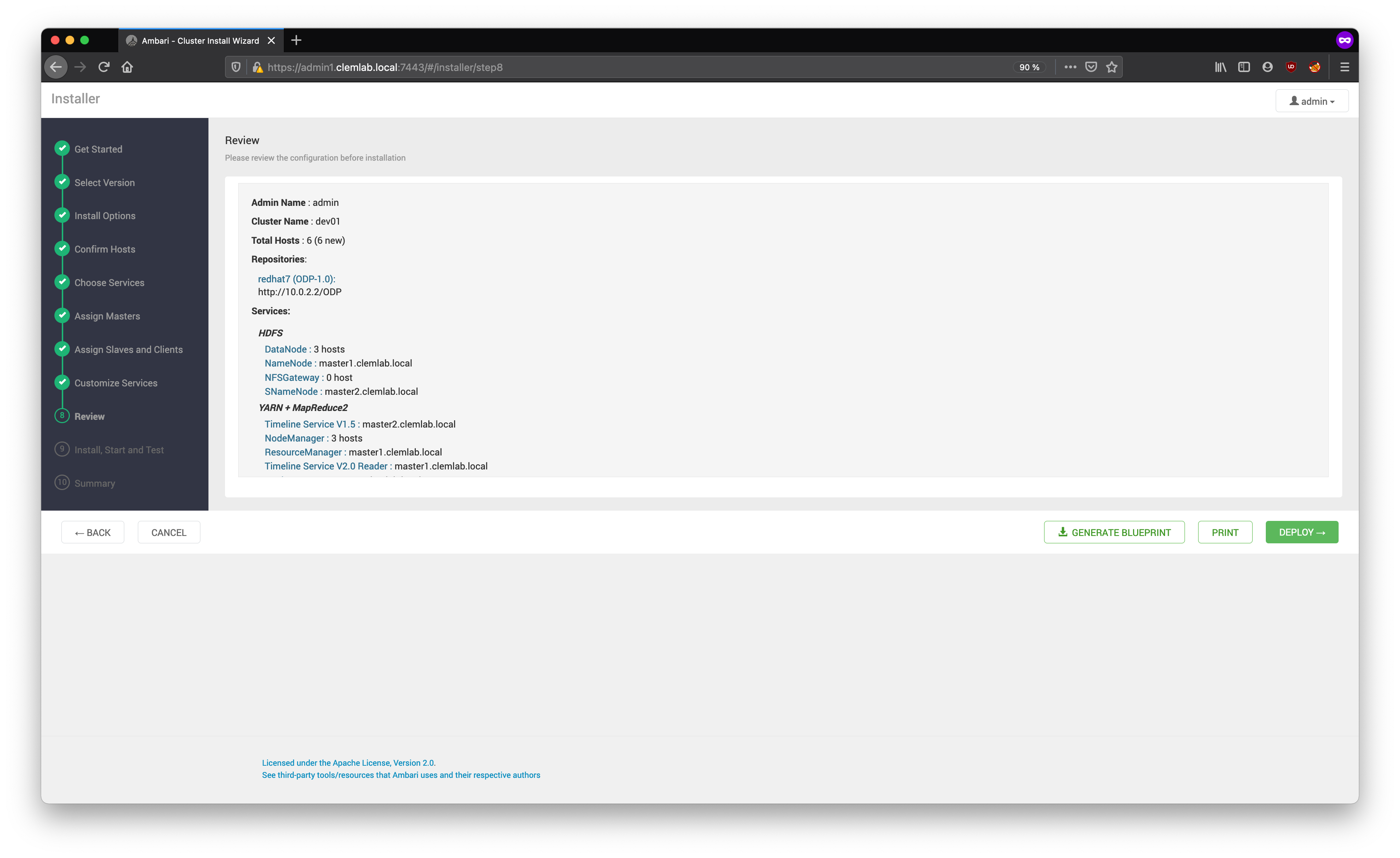 • To export the plan for this cluster, choose Generate Blueprint.